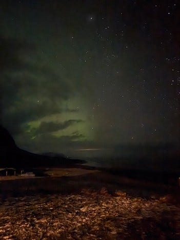 While the trip I went on was ostensibly “Northern Lights” tour, I didn’t get to view the Aurora Borealis with the naked eye. But I was able to capture it on camera.