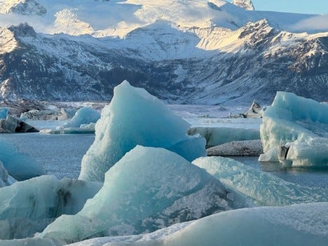 The ice is also dangerous. The glacial lagoon in the photo below is comprised of icebergs that break off Iceland’s largest glacier before they are swiftly carried out to sea by strong currents. We were warned about those currents, and told humans could only survive mere minutes in the icy water.